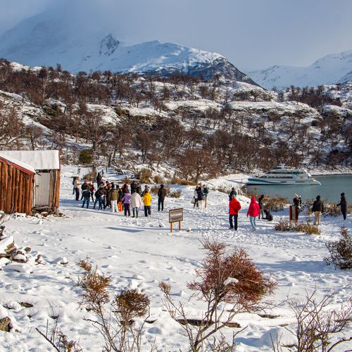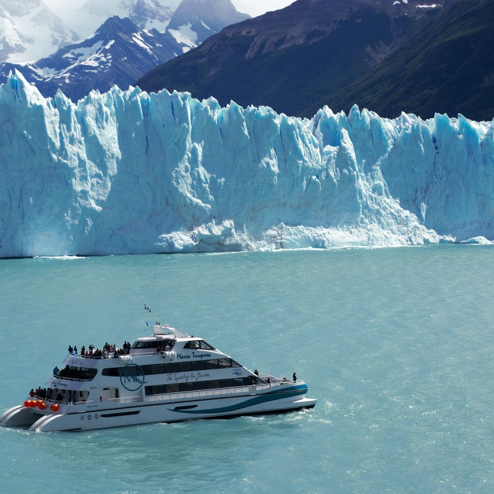 An unique gourmet experience: In this tourwe will board the cruise ship at Puerto La Soledad at 9:00 am, and sail to the Spegazzini Glacier where we'll enjoy lunch. We will disembark at Vacas Port for a walk and finally return to Calafate Town at 6:00 pm.