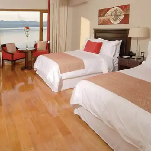 Ubicado muy cerca del centro de la ciudad de San Carlos de Bariloche, en un fantástico entorno natural del Lago Nahuel Huapi, se encuentra este hotel. Diseño y estética se conjugan, uniendo la magia de la naturaleza al confort que requiere el turismo de alta gama.
