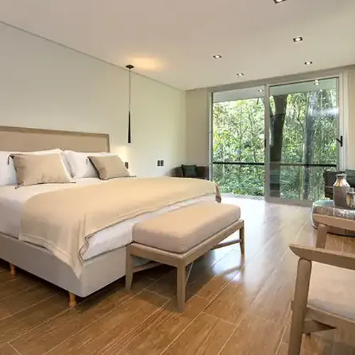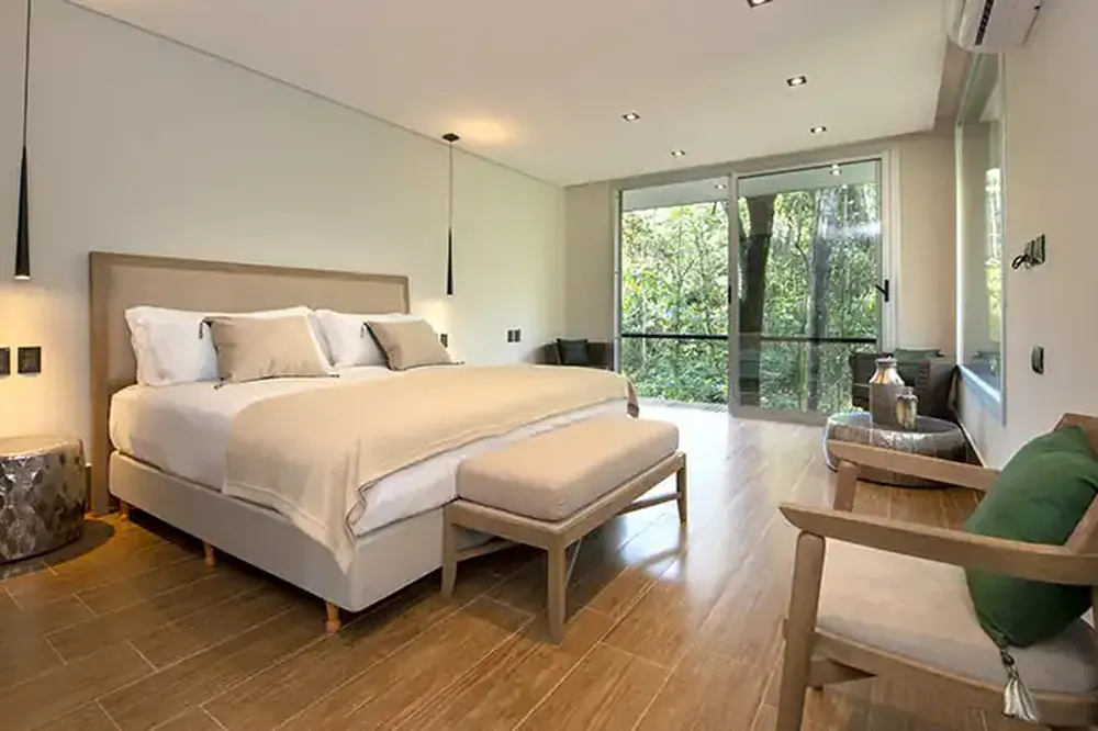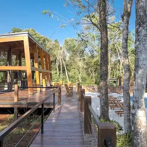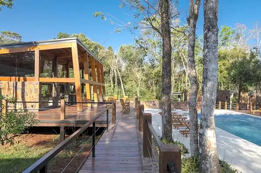 El Selvaje Lodge Iguazú se localiza en Puerto Iguazú. Con 12 suites a las que se llega a través de pasarelas elevadas y terrazas suspendidas, el lodge ofrece la posibilidad de disfrutar equilibrando sociabilidad y soledad. Las habitaciones poseen una magnífica vista hacia una parte de la selva virgen, sin interferencias.