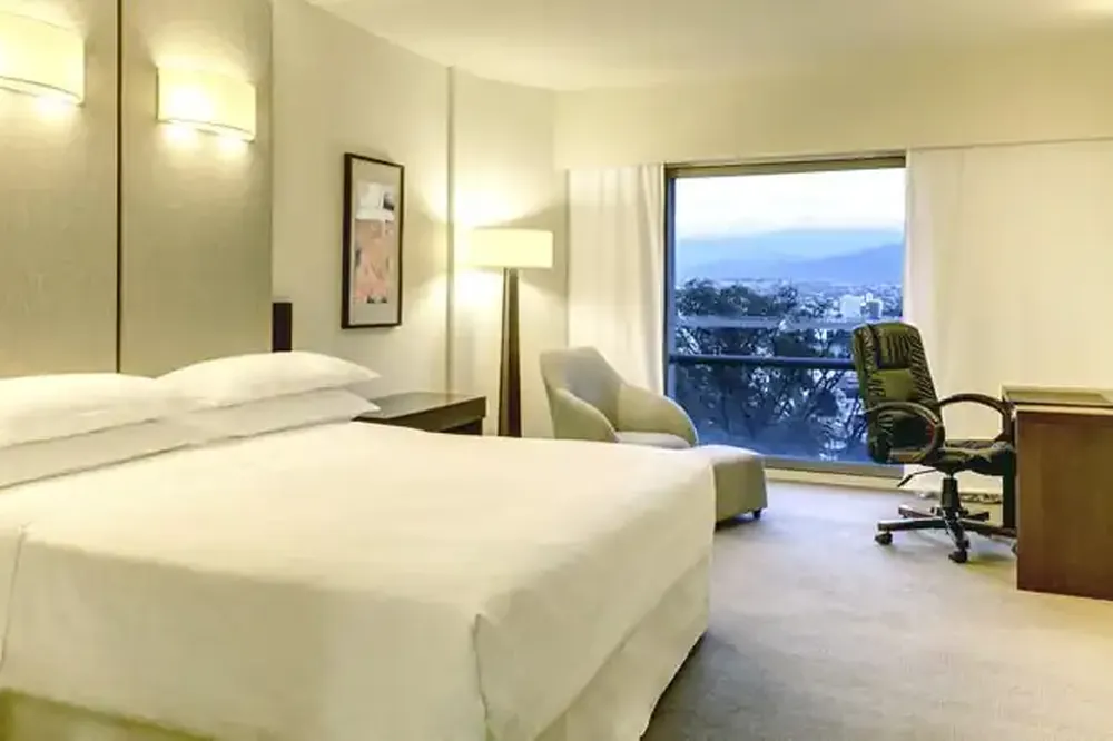 Las estadías en el Sheraton Salta Hotel son inolvidables. Situado en una de las ubicaciones más aristocráticas de Salta, el hotel está a sólo diez cuadras del animado centro de la ciudad y ofrece una vista panorámica del Valle de Lerma. Un lugar para poder relajarse y disfrutar días agradables en el acogedor vecindario de Monumento.