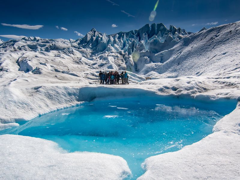 Trekking sobre Hielo en el Glaciar Perito Moreno, el más famoso de los glaciares, declarado patrimonio natural de la humanidad por la UNESCO.